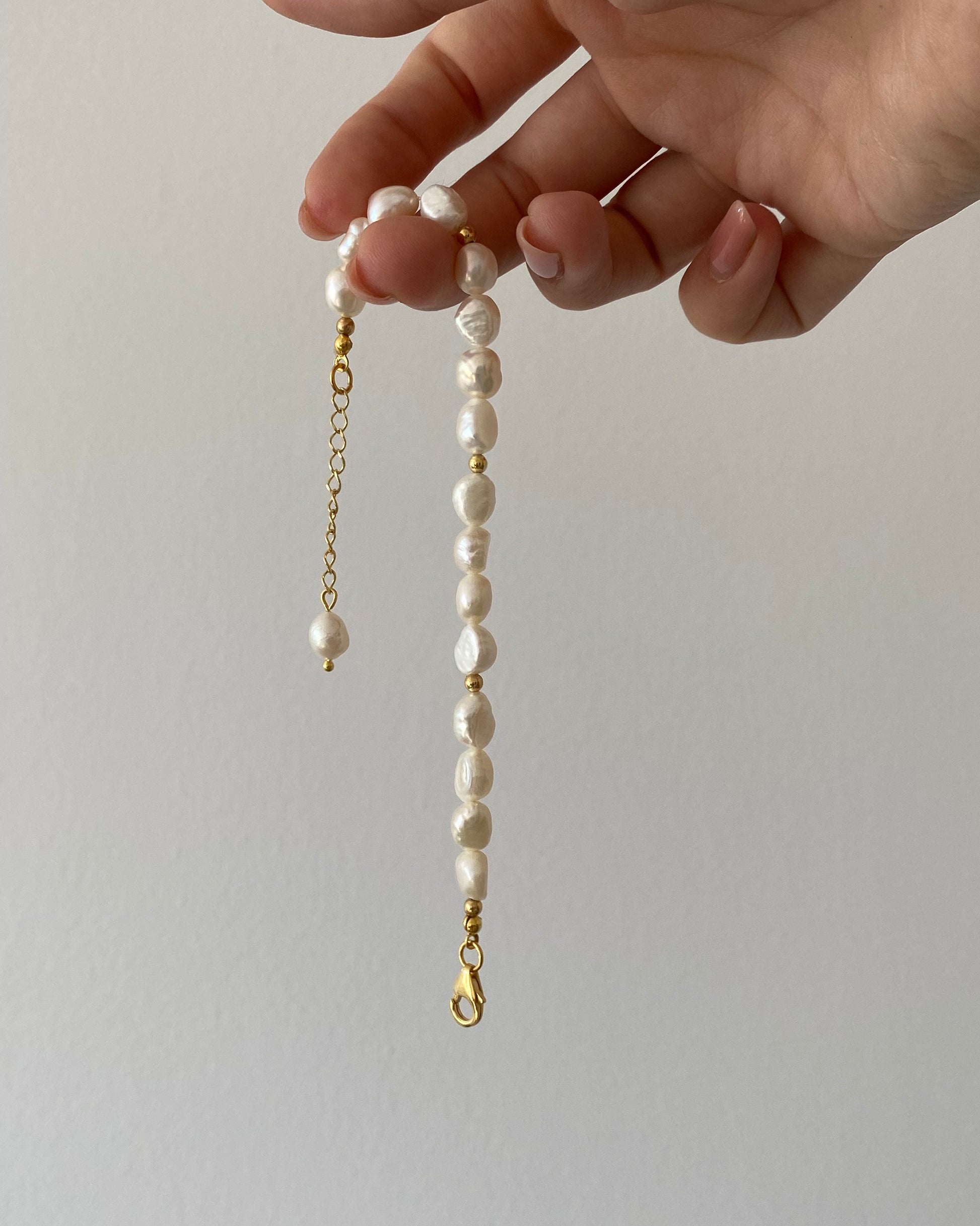Ręcznie wykonana bransoletka z nieregularnych, barokowych pereł słodkowodnych.