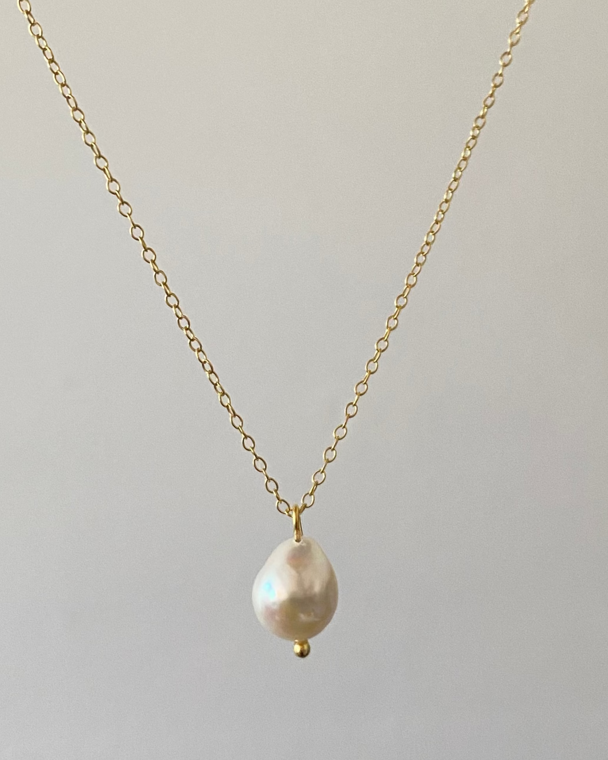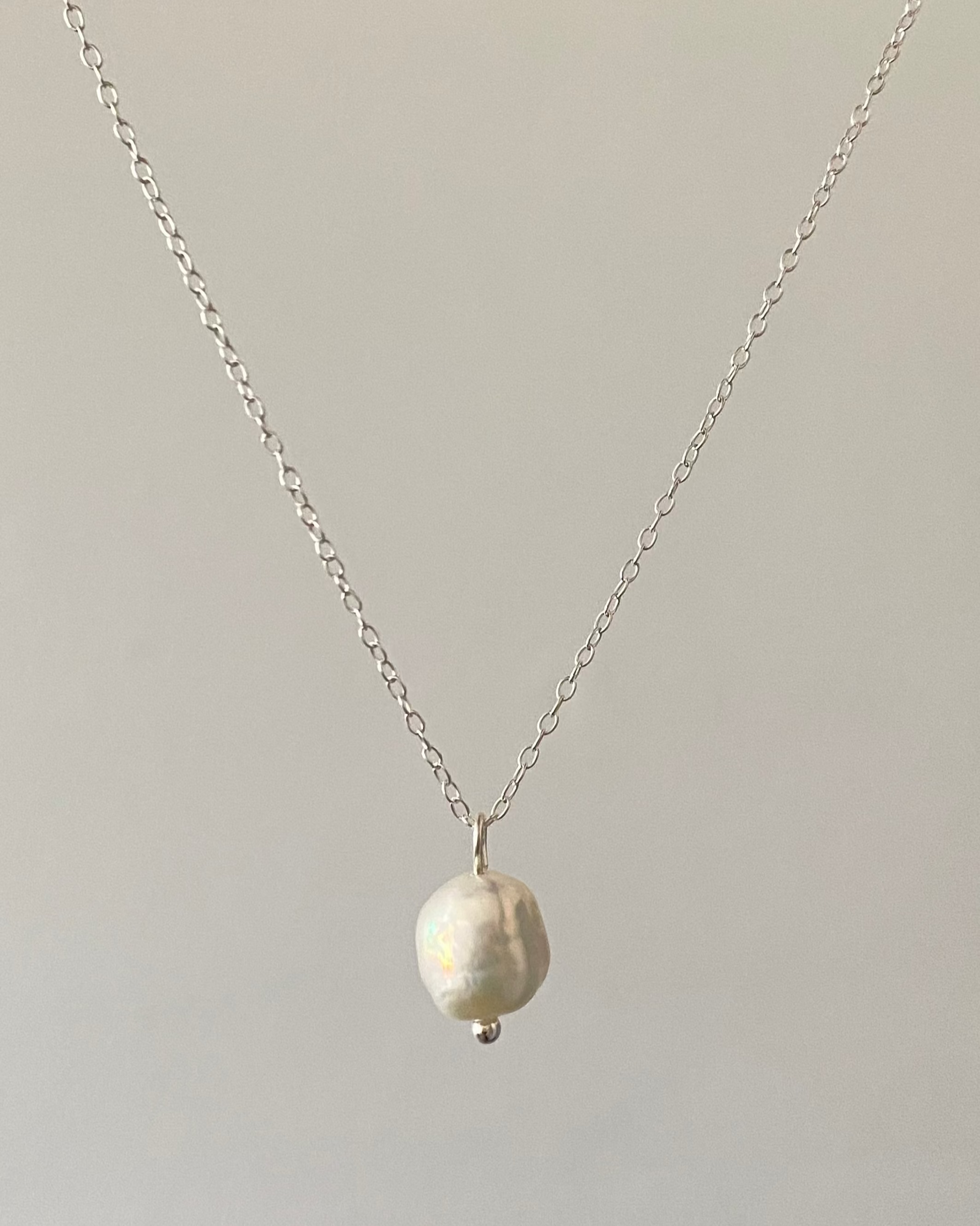 Ręcznie wykonany naszyjnik z nieregularną, barokową perłą słodkowodną.