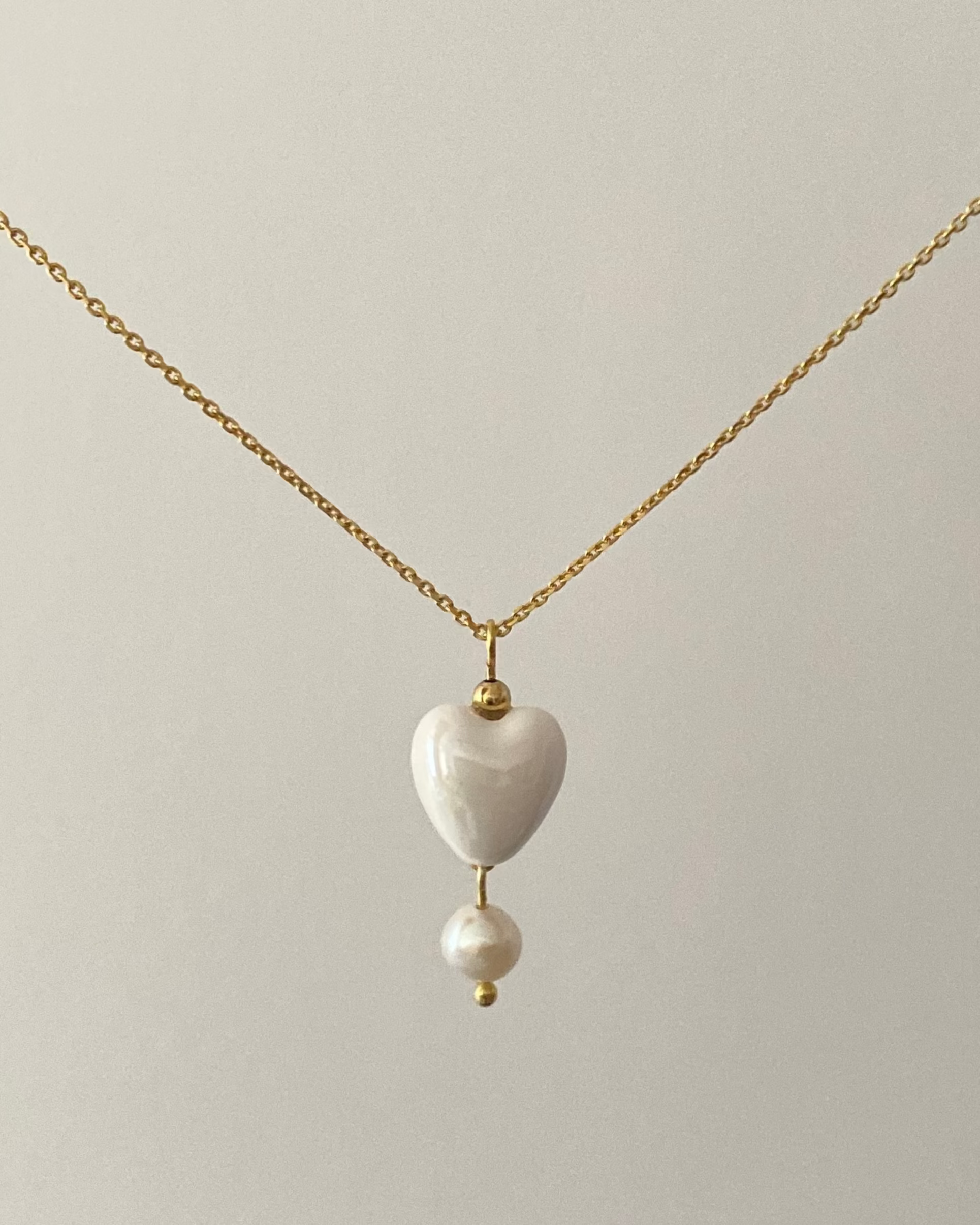 Materiał: ceramiczne serce, perła słodkowodna, srebro 925, srebro pozłacane 14k
